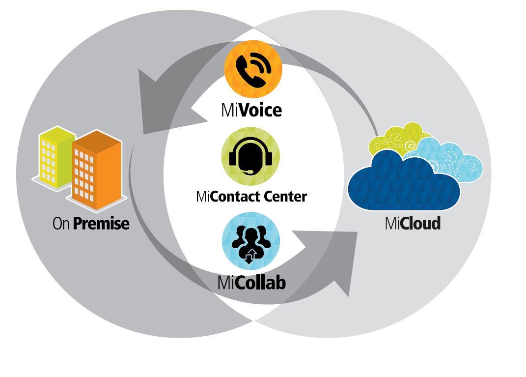 You can deploy MiVoice, MiCollab, and MiContact Center in a private, public, or hybrid cloud. Private cloud deployment lets you deploy in your own data center or on dedicated servers in a service provider’s data center.